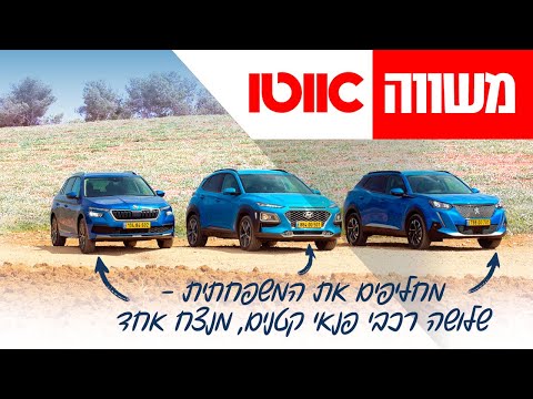 יונדאי החלה לשווק את קונה ב־2018, וב־2019 הוצגה גרסה מוזלת שלו עם הנעה קדמית בלבד. הדגם מוצע בגרסה היברידית ובגרסת בנזין עם 177 כ"ס, והיא זו שהתייצבה כאן. לקונה שתי רמות גימור, 'פרמיום' ו'סופרים פרסטיג'' — ואנחנו קיבלנו את השנייה, שעולה 134,000 שקלים. סקודה מציעה את קאמיק בישראל מפברואר 2020 בשתי גרסאות מנוע טורבו־בנזין — 1.0 ליטר, 115 כ"ס; 1.5 ליטר, 150 כ"ס — ובשתי רמות גימור: 'אמבישן', 'סטייל'. למבחן התייצבה גרסת הליטר ב'סטייל', ומחירה של זו הוא 135,000 שקלים. פיג'ו החלה למכור את 2008 באפריל השנה, וזה מוצע עם מנוע טורבו־בנזין 1.2 ליטר וטורבו־דיזל 1.5 ליטר, שניהם מייצרים 130 כ"ס — ובשתי רמות גימור: 'אקטיב', 'פרמיום'. למבחן התייצבה גרסת הבנזין ב'פרמיום', שמחירה 135,000 שקלים.